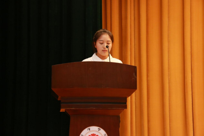 老生代表2021级环境科学与工程专业汤文芳同学向大一新生们分享了自己入学以来在思想、学习、工作和生活四个方面取得的成绩,并从专业学习、综合发展、人际关系处理等方面给新生们提供了一些建议。
