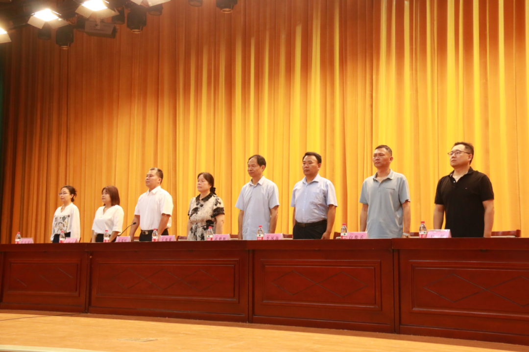 全体起立奏唱国歌。
