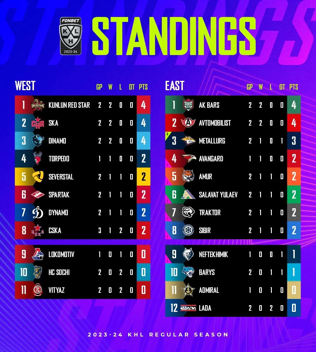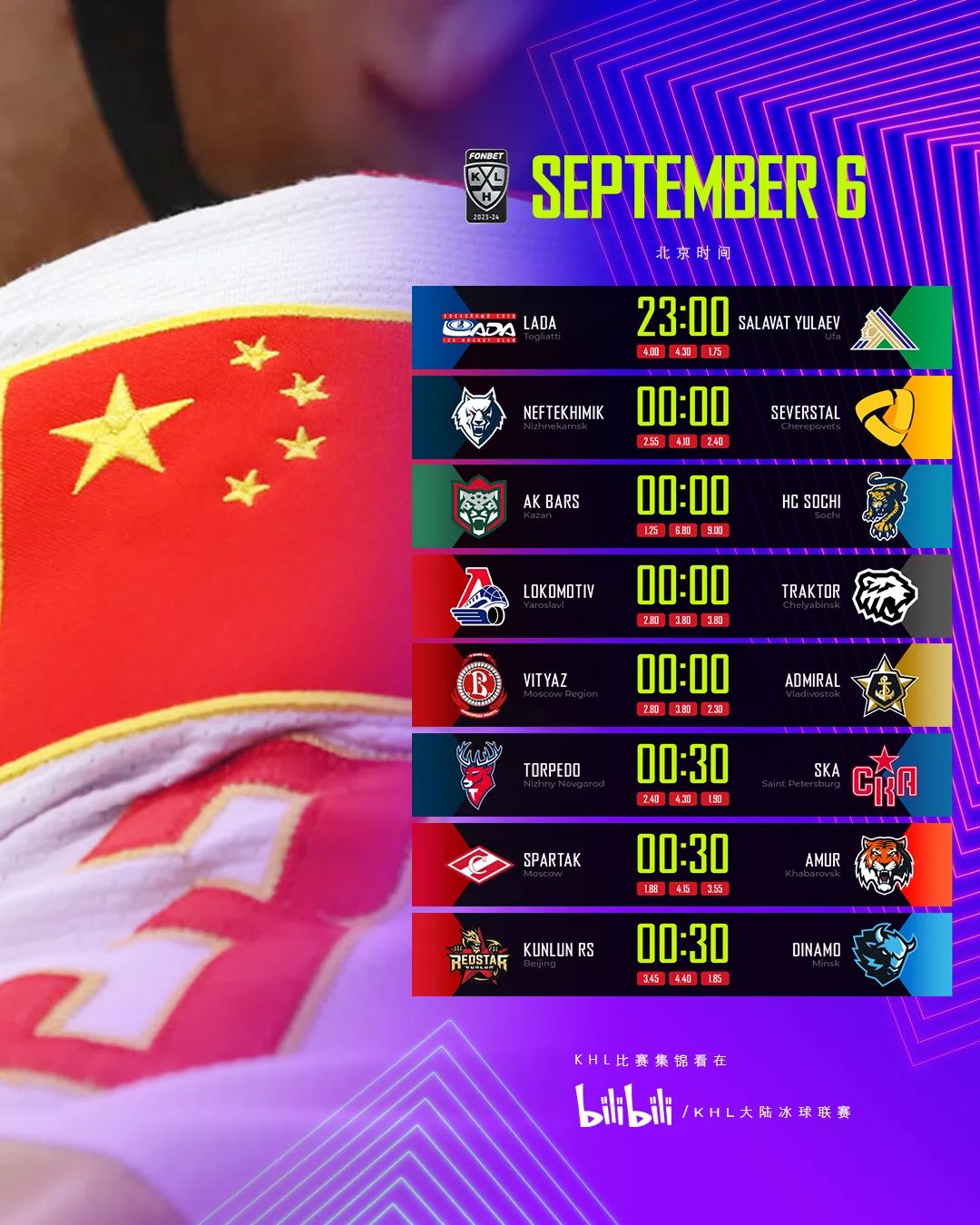 北京时间9月6日,2023-24赛季KHL常规赛继续进行,今晚有8场比赛上演。
