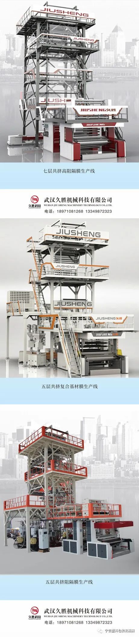 武汉久胜机械科技有限公司由一批对吹膜机设计与制造有着独特见解且勇于创新的行业精英共同组建而成,技术人员是长期从事塑料机械制造的高级工程师。