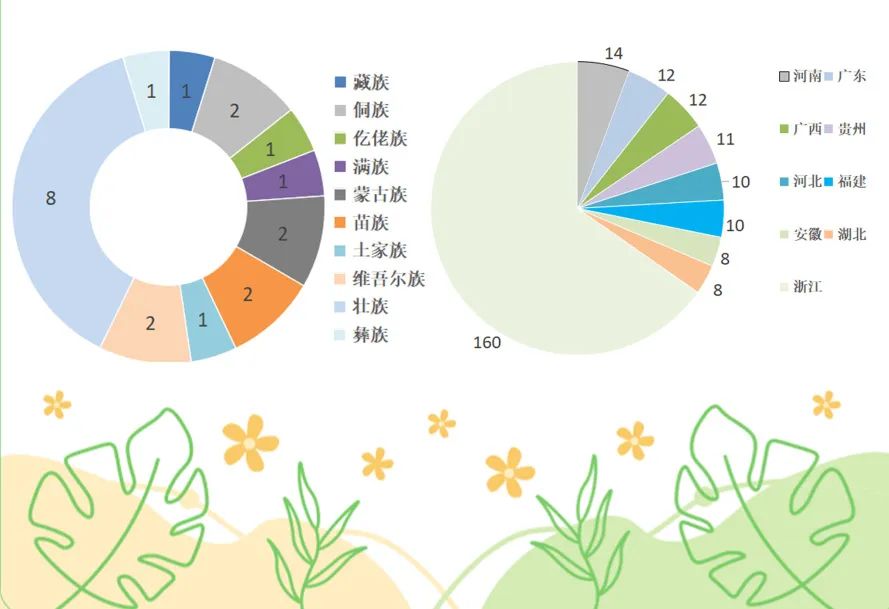 2023级的纺织科学与工程学院的萌新们来自五湖四海,除浙江籍学子外,还有河南14人,广东12人,贵州11人,河北10人,福建10人,安徽8人,湖北8人。