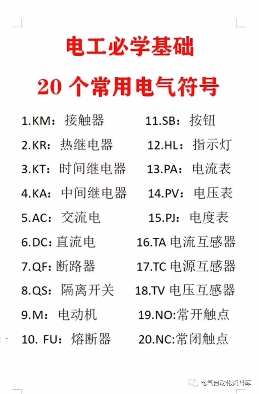 电工必学的20个字母符号 把这20个字母符号记录下来 你就可以当一名合格的电工啦#零基础学电工