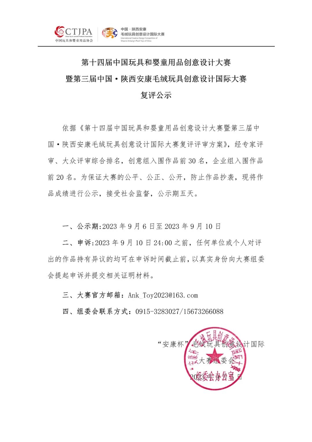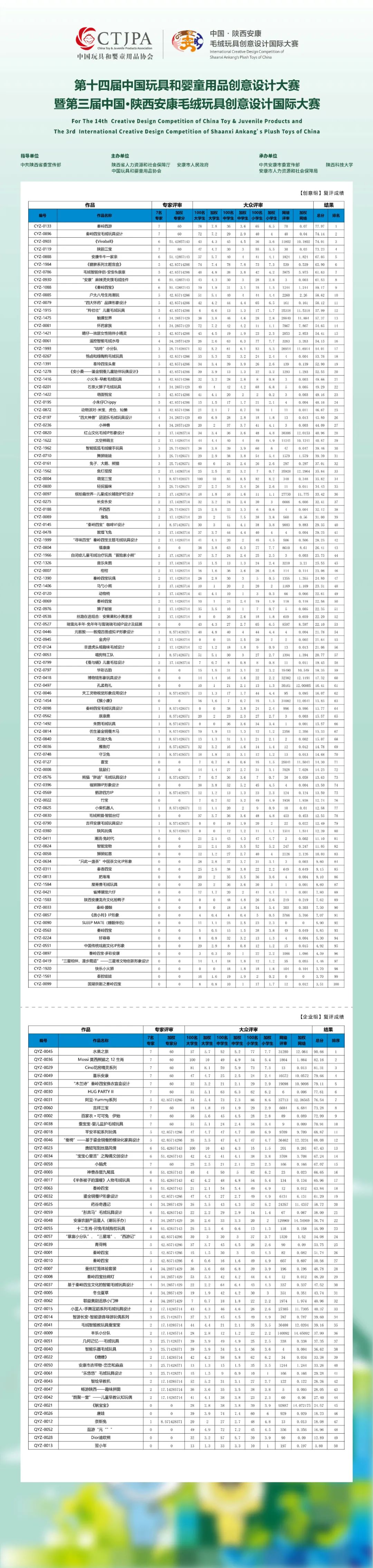 第十四届中国玩具和婴童用品创意设计大赛暨第三届中国·陕西安康毛绒玩具创意设计国际大赛复评公示
