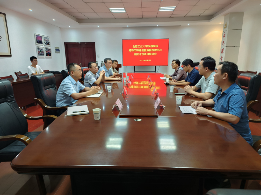为加强校地科技创新合作,推动蚌埠市特检中心在安徽省市场监督管理局立项科技项目的稳步进行,近日,蚌埠市特种设备监督检验中心主任刘继兵、主任助理王念以及部分科研技术人员赴合肥与项目合作单位合肥工业大学仪器科学与光电工程学院官方举行了科技项目推进会。合肥工业大学仪器科学与光电工程学院夏豪杰院长、张进副院长以及部分技术专家参加了此次推进会。