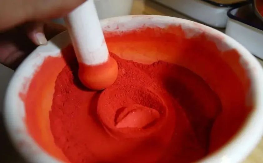 如此,我们已经将朱砂成功从矿石中提取出来了。颗粒状态的朱砂矿晶可装于锦囊中挂在家里或车上用于镇宅、辟邪、化煞;粉末状态的朱砂粉,可用精油或高度酒精调和,用于书法、绘画等场合。
