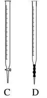 9、滴定管:C为酸式滴定管,用于盛装酸性或强氧化性溶液,不可盛装碱性溶液;D为碱式滴定管,用于盛装碱性溶液或还原性溶液,不可盛装酸性和强氧化性液体(如KMnO4溶液)。