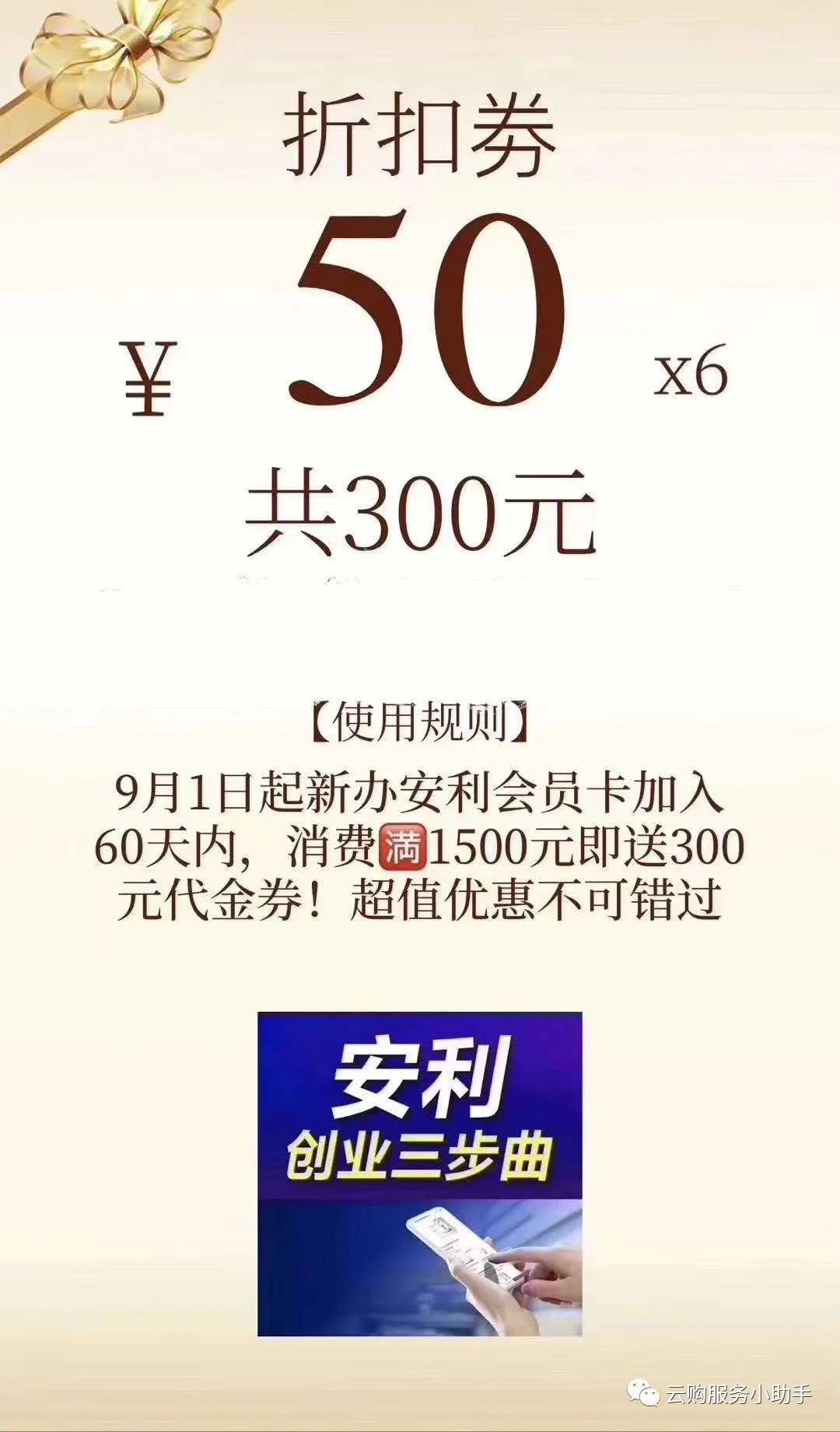 自2019年9月1日加入的新营销人员,在加入后的60天内,单张满1,500元的订单可获赠6张50元(共300元)折扣券。每户新人仅有一次参与机会。