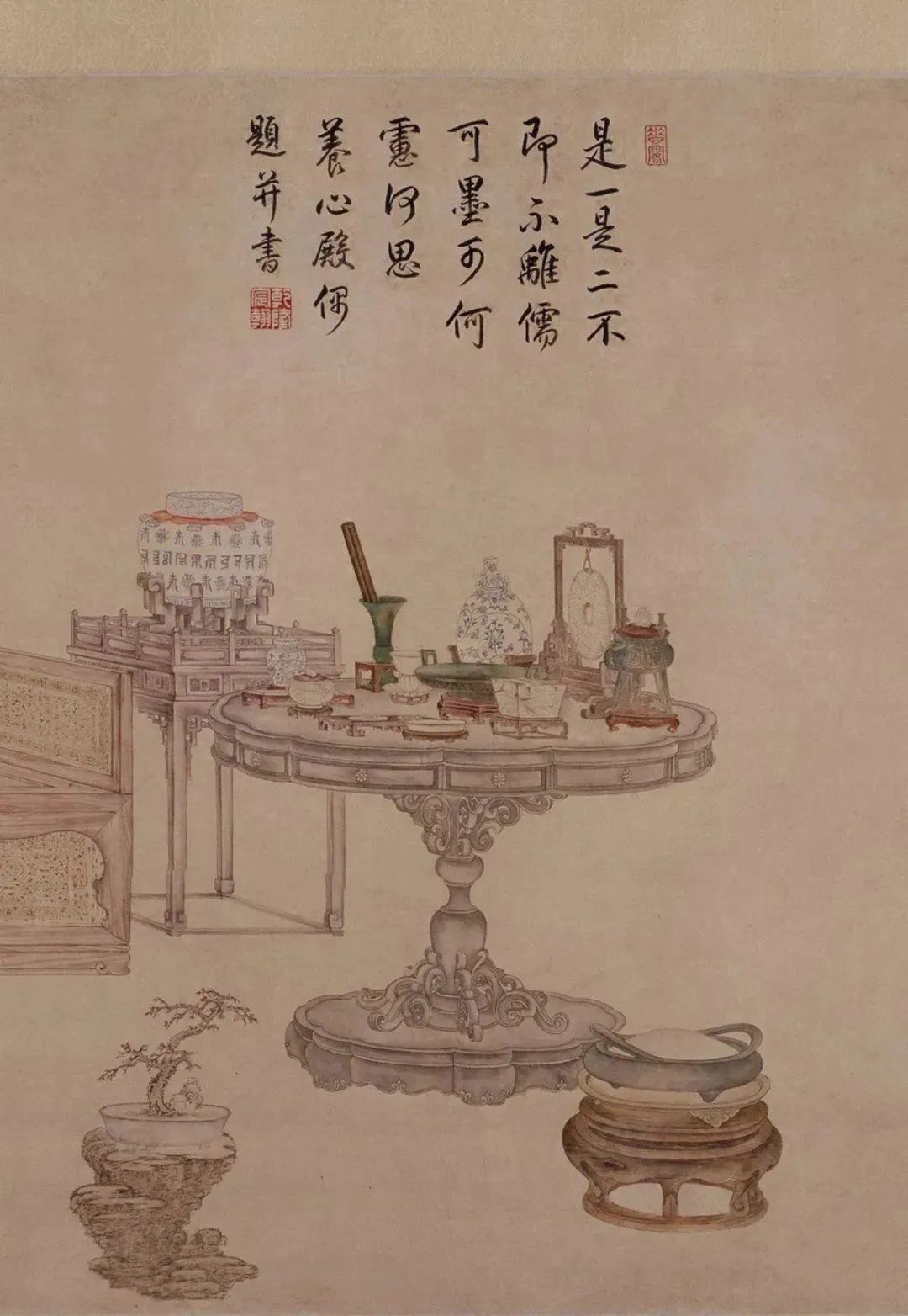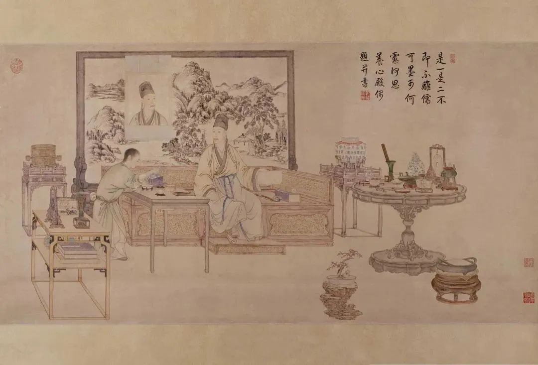 即展现了乾隆皇帝鉴赏古物珍玩时的场景