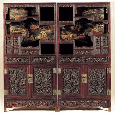 清乾隆 紫檀高浮雕龙纹多宝格