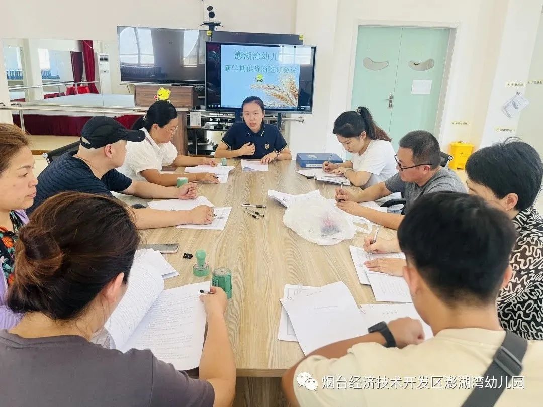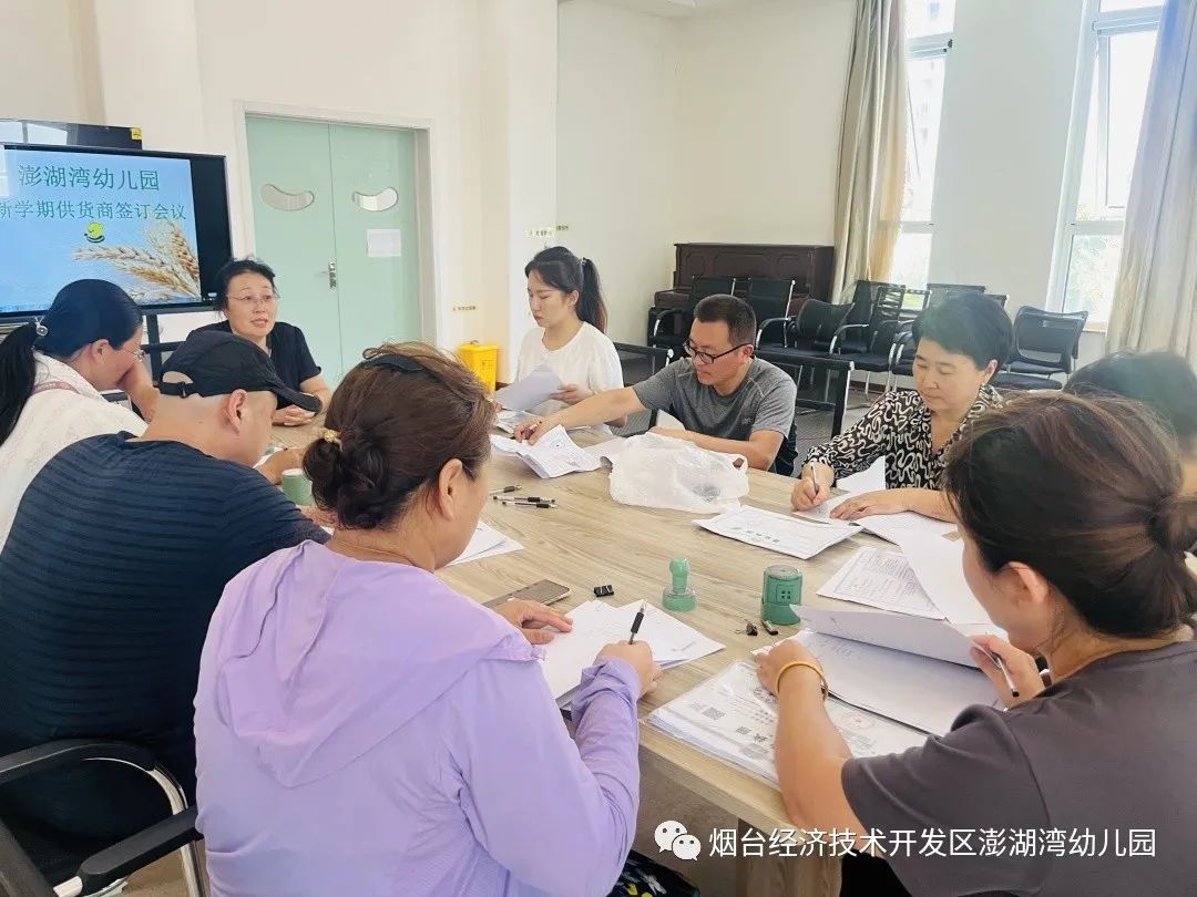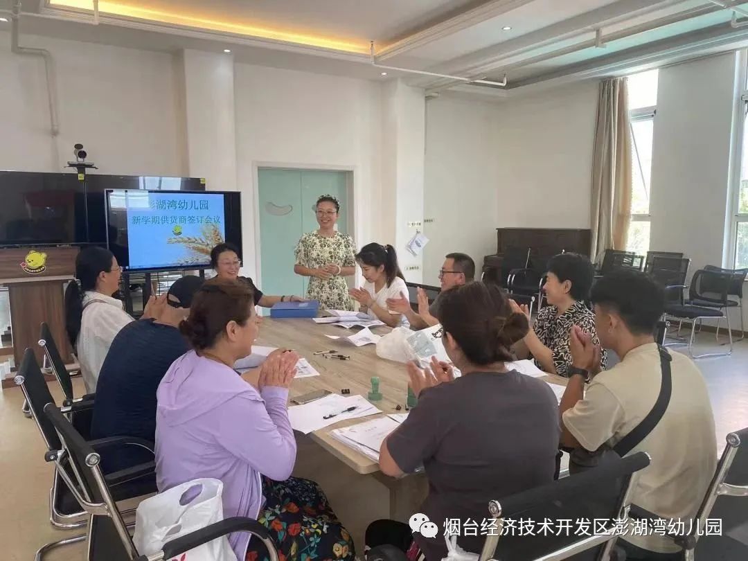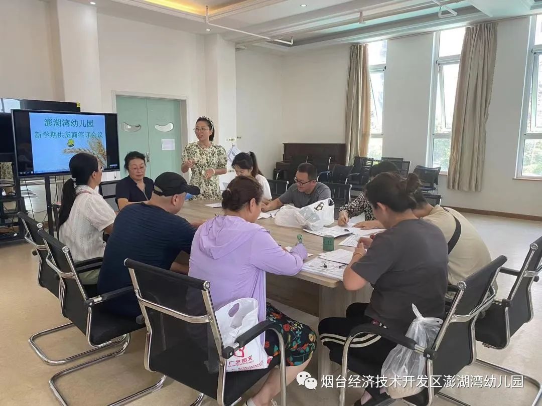 随后各食品供货商与幼儿园卫生保健人员、后勤主任就幼儿园供货标准、时间进行沟通和交流。最后,食堂负责人和参会的供货商签订了《澎湖湾幼儿园供货协议书》,共同为孩子们的健康负责。