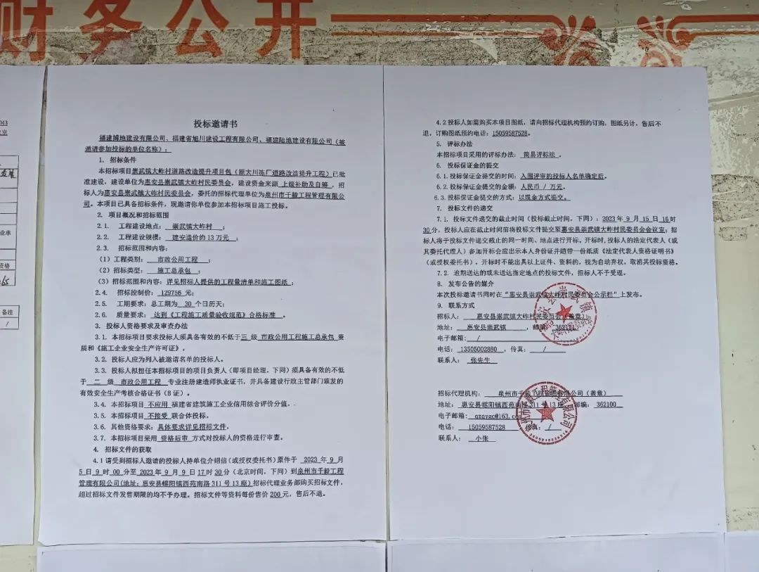 大岞村建设工程投标邀请书