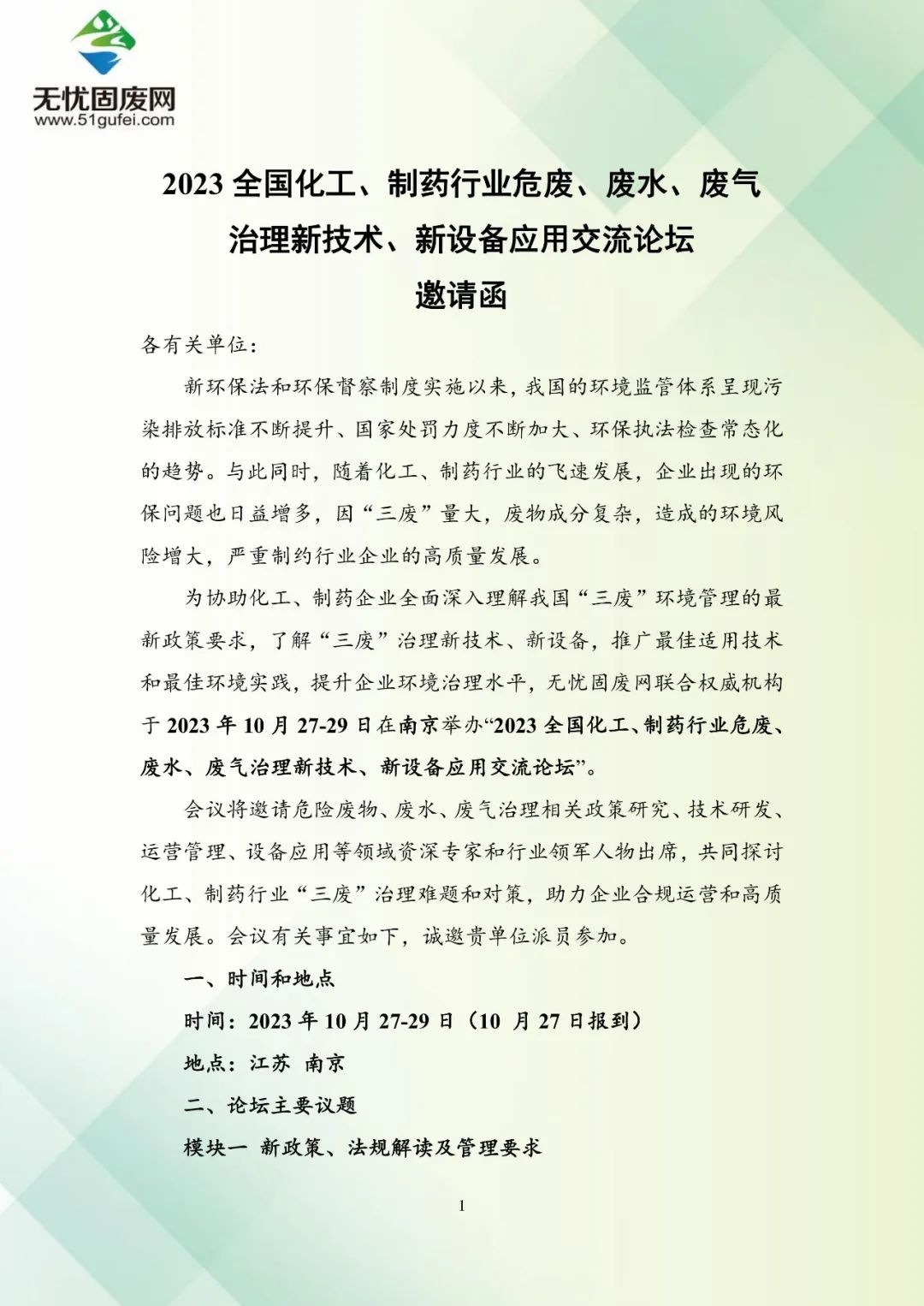 2017中国化工行业危险废物减量化、资源化与无害化技术论坛