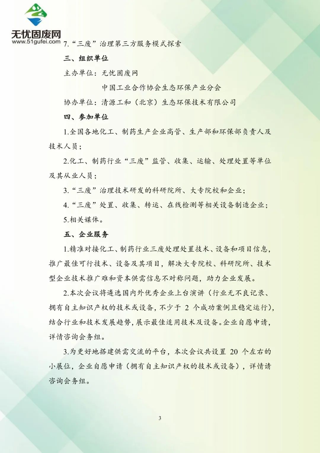 2019中国化工行业危险废物减量化、资源化与无害化技术论坛