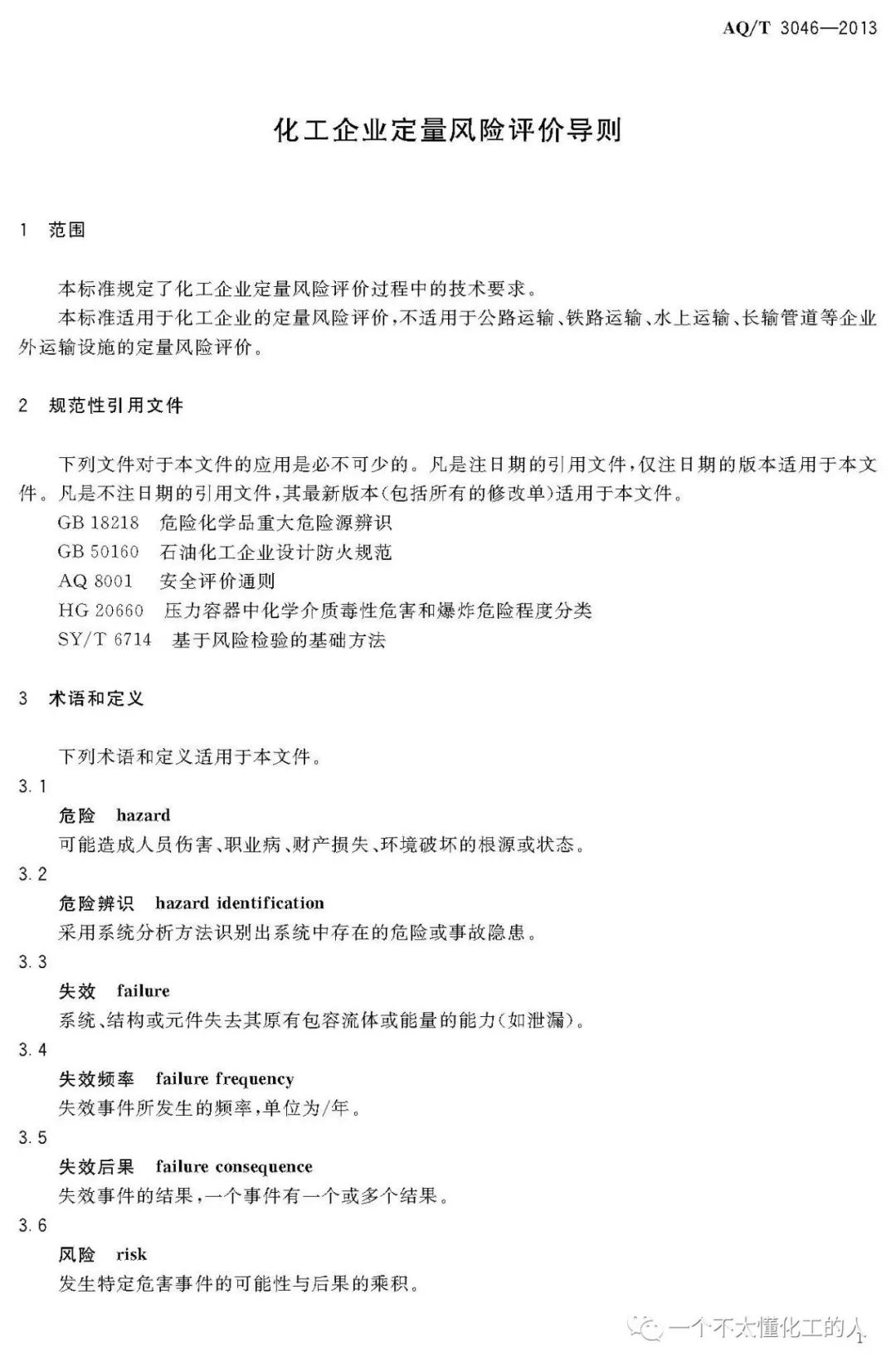 本标准的定位:为化工企业定量风险评价技术提供规范性依据。因此,本标准的原则应该体现规范性和可操作性。即综合考虑国外其他国家或机构对定量风险评价技术的规定和国内化工企业的现实性;框架结构主要是参照SY/T 6714-2008《基于风险检验的基础方法》和《TNO Purple Book Guidelines for Quantitative Risk Assessment》的内容而制定。