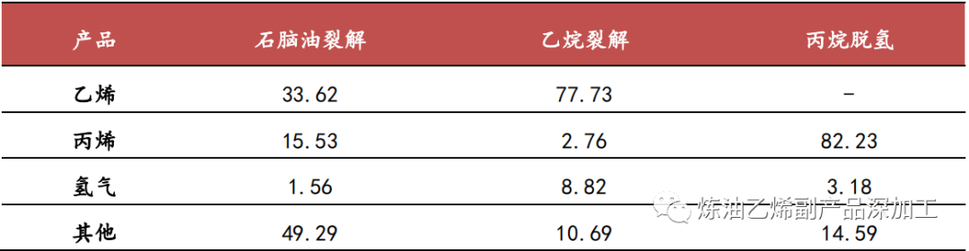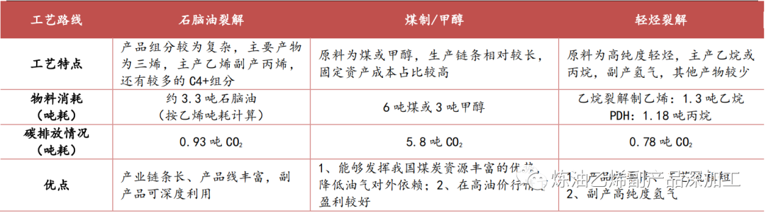 图 烯烃三大类制取工艺对比