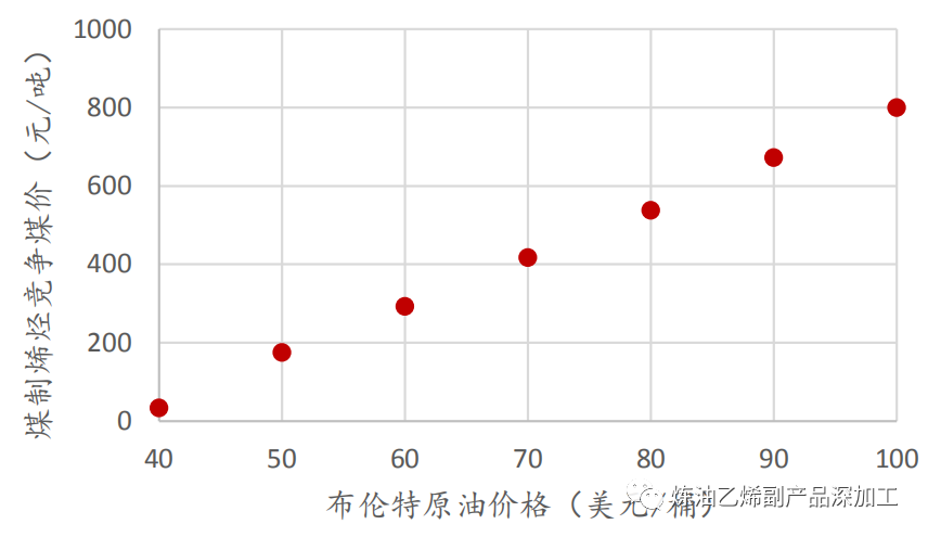 图 不同油价下煤制烯烃项目对应的竞争煤价