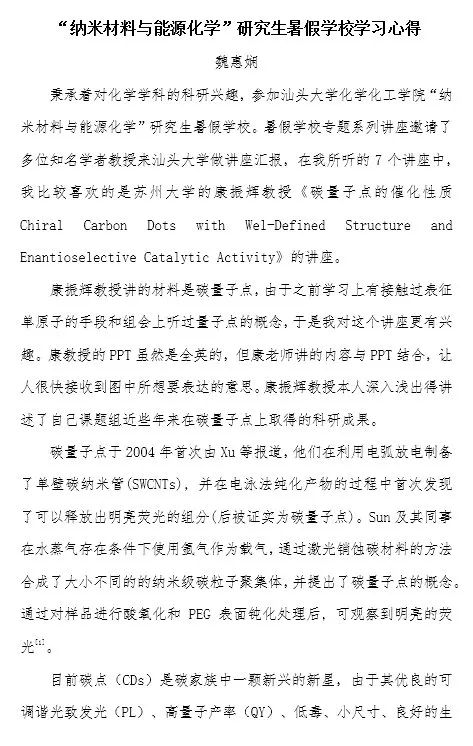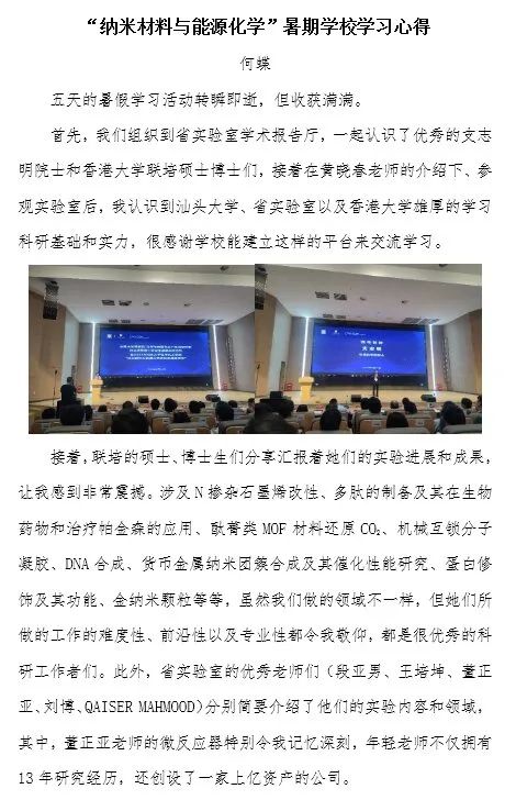 汕大化学化工学院成功举办“纳米材料与能源化学”研究生暑期学校活动