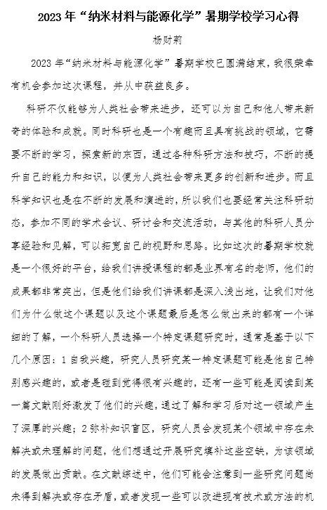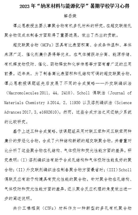 周天华研究员(福建物构所)——晶态多孔材料光催化二氧化碳还原本次暑期学校活动使同学们对纳米材料与能源化学领域的最新研究进展有了更深入的了解,学员们表示扩宽了学术视野,激发了对科研的兴趣,也为未来的研究方向和应用前景提供了重要的参考和启示。