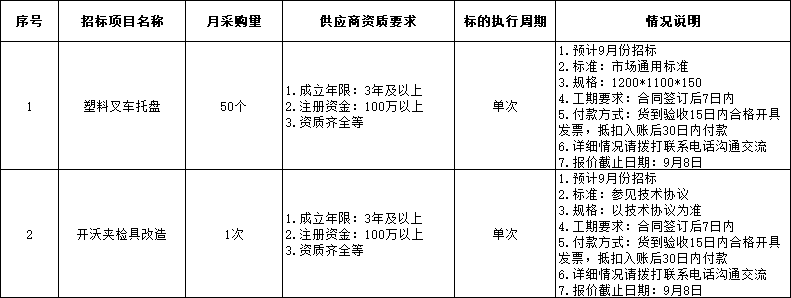 招标项目:塑料叉车托盘