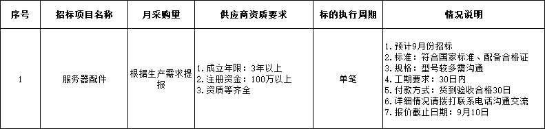 招标项目:服务器配件