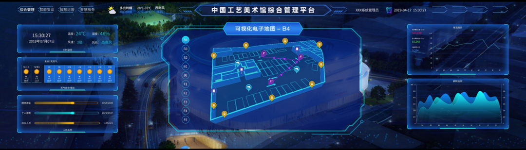中国工艺美术馆、中国非物质文化遗产馆的安防突显科技化和智能化特征。在重要安防配置中加入了基于AI分析的大安防系统,通过电子鹰眼的智能识别及自动追踪,能最大程度地消除外部安全隐患;大安防系统还可以对空气采样并进行空气颗粒物分析,早在火灾阴燃阶段即发现警情,提醒管理人员介入检查,保障大楼消防安全。不仅如此,通过AI技术的应用,在主要出入口、展厅、藏品库设置的人脸识别摄像机可以主动发现人员、物品的潜在危险并预警,提高安防管理效率的同时也减轻安保后勤人员的工作强度。