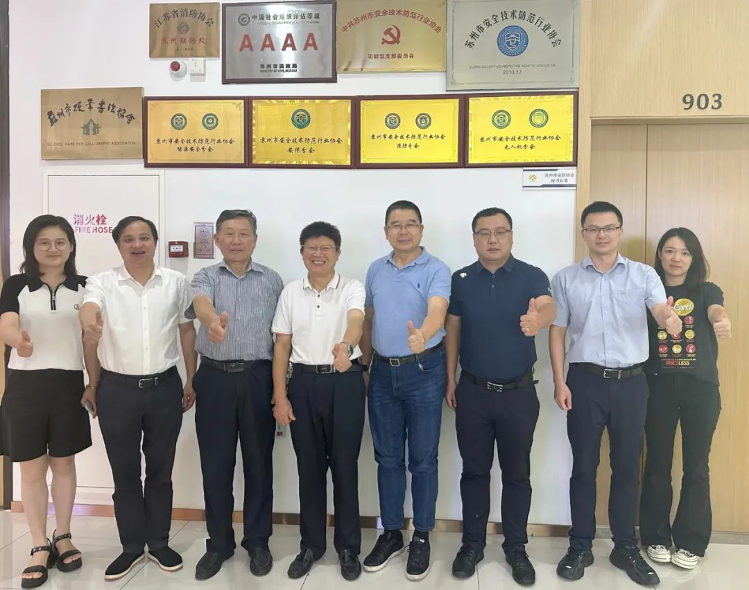 2023年9月6日下午,苏州市苏台工商协进会执行秘书长蒋国忠、秘书赵思雨一行来到苏州市安防协会驻地苏州市狮山横塘便民服务中心九楼进行协会间发展的交流沟通。苏州市安防协会秘书长王坤泉、协会首席顾问、苏州市公安局治安支队原领导房余龙,理事长单位科达苏州公司总经理史德园,副理事长单位江苏三意董事长胥德云和海康威视苏州分公司副总经理许梦静,协会办公室主任杨君琛,秘书朱琳等热情接待了蒋秘书长一行。王秘书长首先对蒋秘书长一行的到来表示热烈的欢迎和衷心的感谢。接着,王秘书长形象地用数字“123456”向大家简要介绍苏州市安防协会的主要情况。他讲到,“1个宗旨”即把服务作为协办一切工作的出发点和落脚点,积极落实好服务会员、服务行业、服务政府和服务社会的相关工作;“2支队伍”是在协会专职队伍的基础上,充分发挥监事、顾问、副秘书长、编辑、专家等一大批热心、专业的兼职队伍力量;“3个平台”,协会通过微信公众号、网站、《苏州安防》内刊三个宣传平台及时、定期发布相关信息,扩大苏州安防的宣传效应;“4个分会”为无人机分会、内保分会、消防分会和能源安全分会;“5个委员会”有技防专家委员会、诚信委员会、团体标准委员会、技术创新委员会和功能型党支部委员会;“6方联系”:协会建立常务理事、理事和会员三个群,并成立会员部与会员单位加强联系;与政府部门、各类高校、兄弟省市安防协会、跨行业商协会、大型安防宣传平台展会的日常联系以及建立合作机制。首席顾问房余龙从安防行业的发展、友好单位合作共建、服务会员等方面谈了参与苏州安防工作的感受和体会,表示安防协会近年来工作开展得有声有色,会员单位从一百多家增加到三百多家,这其中离不开秘书长的辛勤付出,他的思路开阔,标杆定位高。期待双方能取得合作的共赢。苏台工商协进会执行秘书长蒋国忠表示对王秘书长认真的工作作风和工作思路非常认可,对苏州安防协会开展工作和取得的成绩给予了充分的肯定。苏台工商协进会在2016年9月1日,经由苏州市委统战部牵头,协同市委台办、市工商联联合成立。蒋秘书长介绍了协进会的宗旨和换届以来的工作情况,以及下一步的一些工作设想,并对双方今后的合作提出了一些建议,秉持两岸一家亲的理念,建立交流机制,在促进两岸人员交流、推动企业融合发展上多下功夫,扎扎实实让台企民企双赢互动发展。科达总经理史德园、三意董事长胥德云和海康威视苏州分公司副总经理经理许梦静纷纷就各自公司的情况和协会的一些工作在会上进行了交流。双方还就如何加强秘书处工作、加强协会交流,合作共建等方面达成了共识。蒋秘书长表示不虚此行、受益匪浅,以后还要多互动、多沟通,早日与安防协会建成友好共建单位。