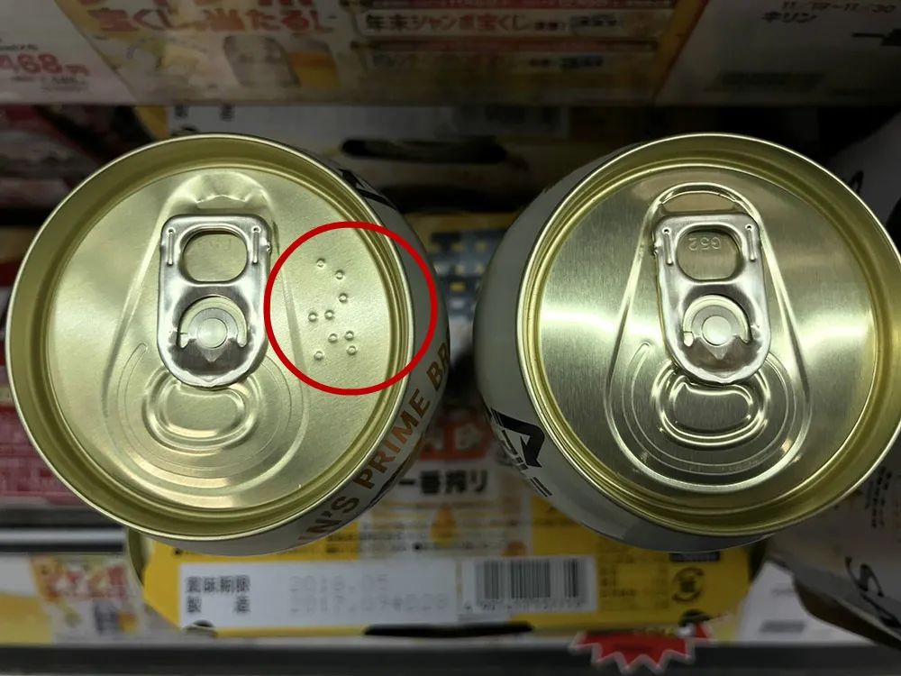 这样的设计也不仅是出现在牛奶盒子上,在是否含酒精类的饮料也通过“点字”(盲文)进行标注。