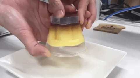 只要轻轻一按,完整的布丁就轻松的从盒子中duangduang掉出来啦,干净又方便,666啊~