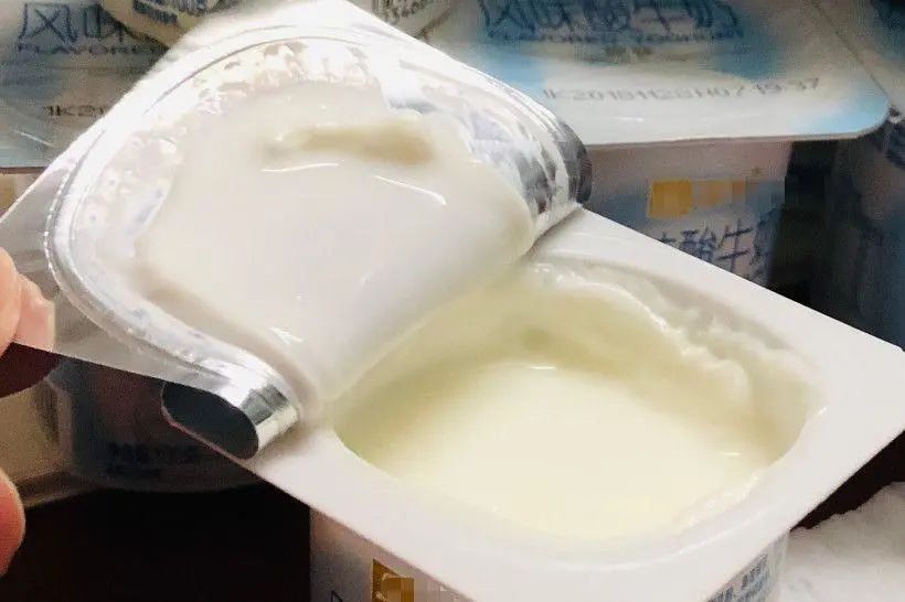 问大家个事儿,吃酸奶舔不舔盖儿呢?一撕开盖子,看到上面沾上一层厚厚的酸奶。