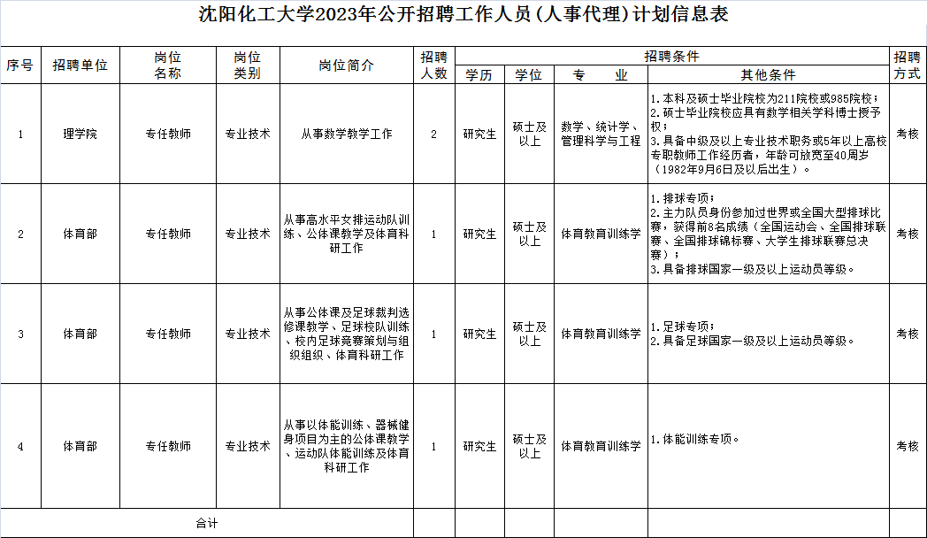 (五)岗位所需要的其他条件,详见附件1:《沈阳化工大学2023年公开招聘专任教师(人事代理)计划信息表》。