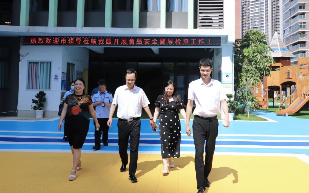 为全面落实食品安全“两个责任”工作机制,加大幼儿园食品安全监管力度,确保幼儿园食品安全工作平稳有序推进,9月6日上午,茂名市副市长梁浩同志带领市科技局副局长巫卫国、茂南区市场管理局新湖所黄文伟等一行5人莅临茂名市东湾幼儿园进行食堂包保A级餐饮单位食品安全督导检查工作。