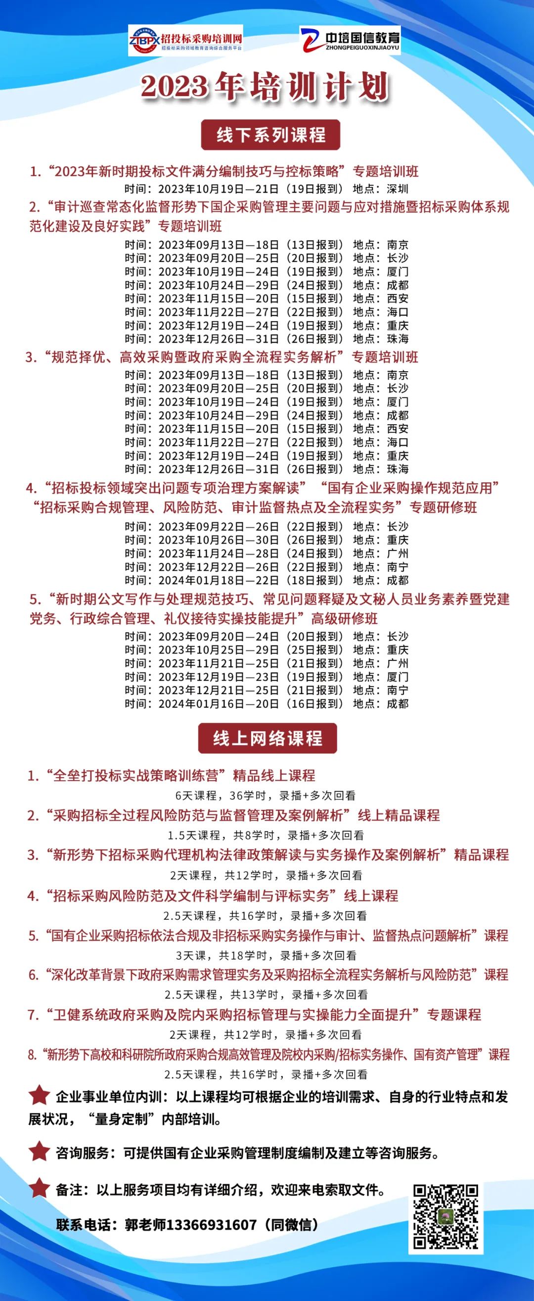 为了帮助广大投标人进一步深入掌握国家招标投标相关政策法规,构建企业综合投标管理体系,提升企业竞争力,加强相关从业人员招投标实务操作能力及风险防范水平。结合市场调研情况,招投标采购培训网(www.ztbpx.org.cn)与中培国信教育咨询中心决定举办本次培训班,请各单位积极组织本单位及下属单位相关人员参加,有关详细事宜请见附件。