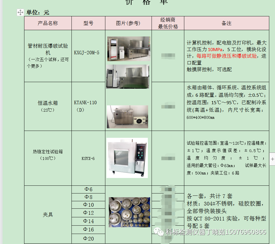 所以我给客户推荐科标公司的管材静液压试验机,报价资料如下,客户只要采购了以下设备,既可以完成上面的实验哦