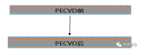 8.2、 正PECVD作用:在电池表面形成一层减反膜,用来提高太阳光的吸收;进行表面钝化和体钝化;阻挡金属离子、水等对电池片的腐蚀;提升电池的Uoc;将长波段的光反射回硅片体内再次吸收,提升Isc。