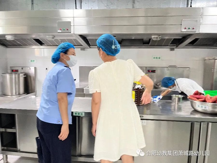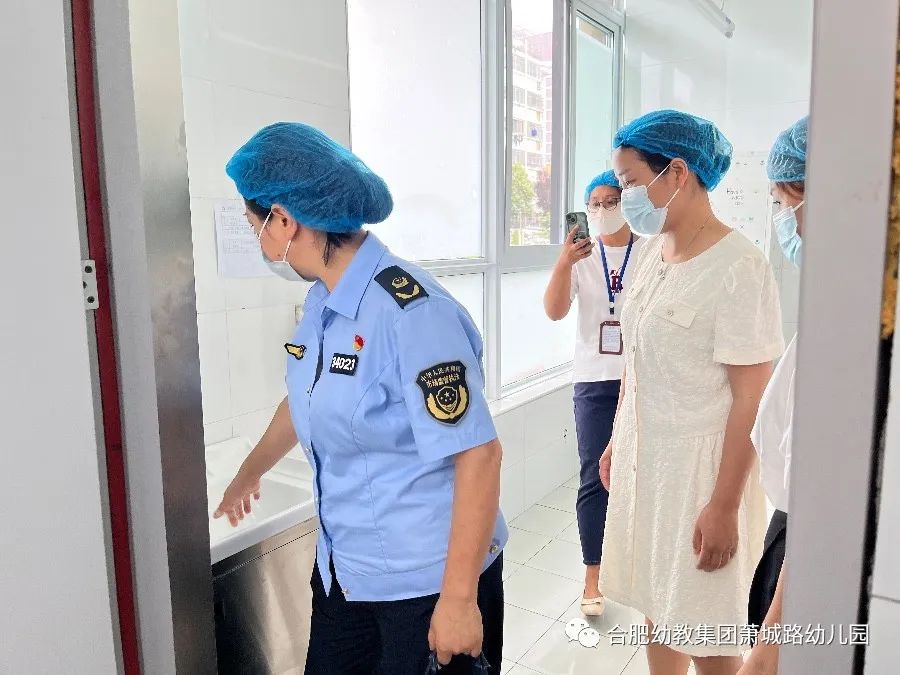 食品卫生安全是幼儿园安全工作的重中之重。为进一步加强幼儿园食品安全管理,保障幼儿身体健康,2023年9月6日上午,七里塘食品药品监督管理局夏莉一行莅临合肥幼教集团萧城路幼儿园检查与指导食堂卫生安全管理工作。