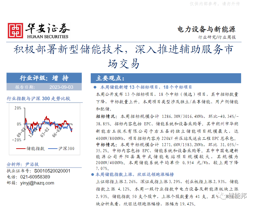 原文件名:>>华安证券-电力设备与新能源行业周报:积极部署新型储能技术,深入推进辅助服务市场交易-230903