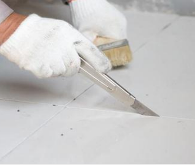 地面铺贴玻化砖留缝、清缝、填缝