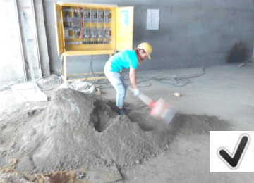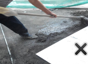 问题:使用铁锹搅拌粘结剂,未使用机械搅拌机。