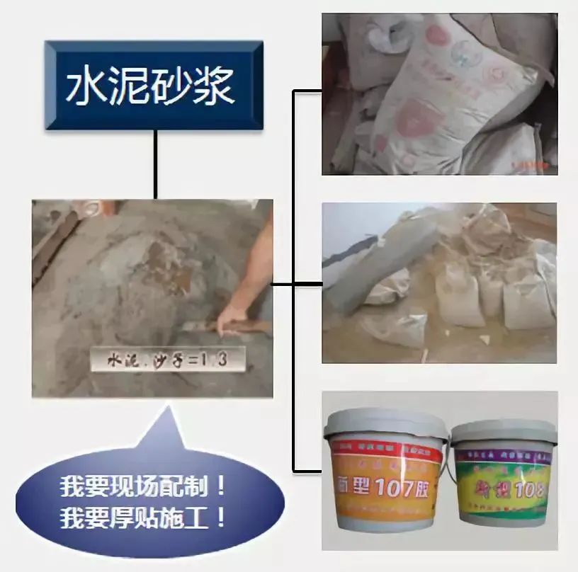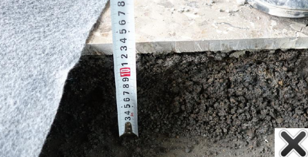问题:半干水泥砂浆厚度过厚(>5cm),砂浆层稳定度差。