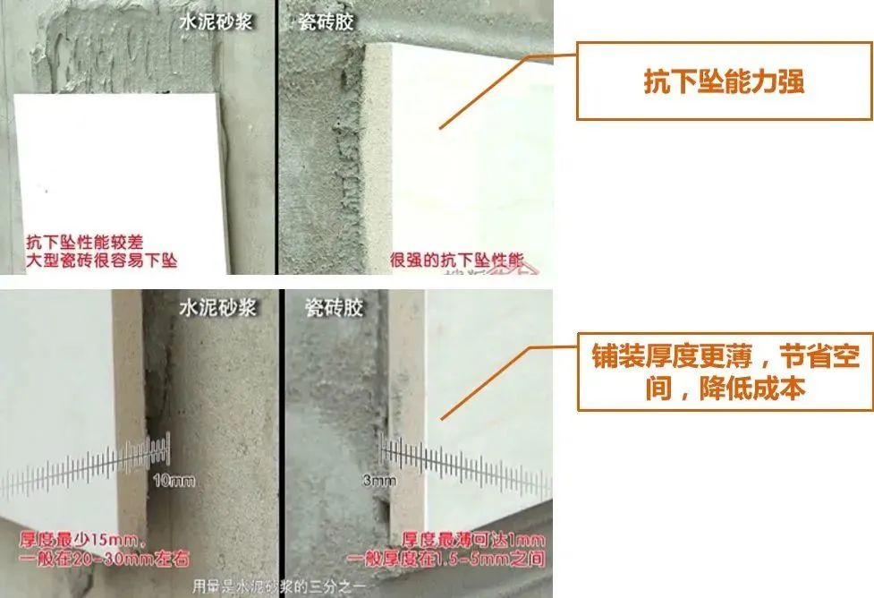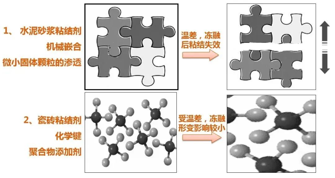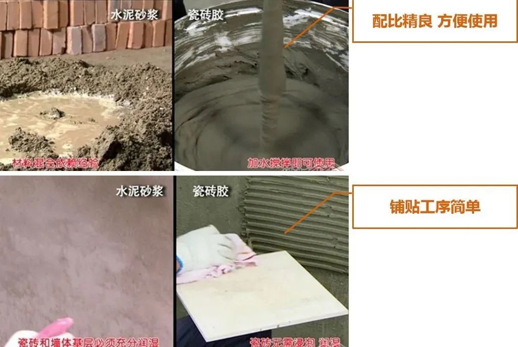 ② 瓷砖粘结剂与水泥砂浆的组成区别: