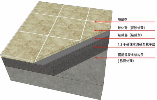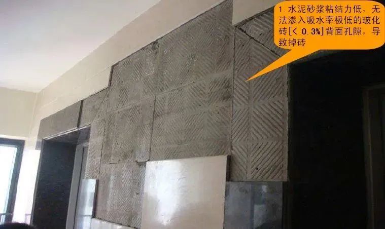 其实在实际的施工当中,由于玻化砖的吸水率低,没有微孔或凹坑可以“锁”住水泥砂浆,经常会出现质量问题。