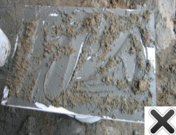 问题:胶粘剂中掺入水泥、黄砂等其它组分,影响了粘结剂的配比。