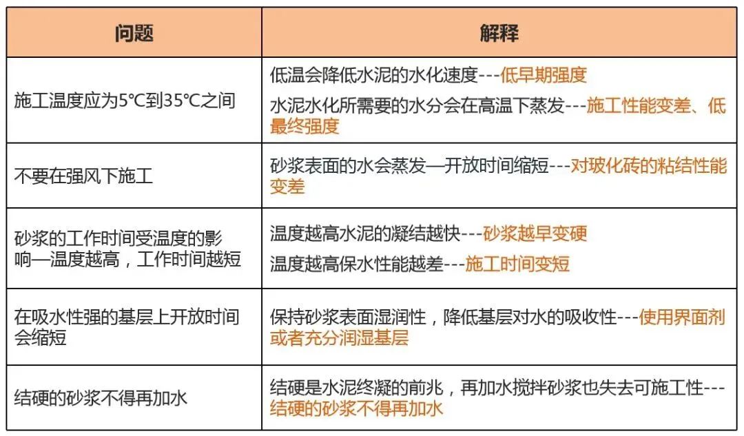 1)粘结材料未按厂家规定的配比施工,或在粘结材料中掺入水泥;