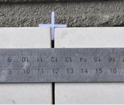 5)当玻化砖面积小于 600mm*600mm 时,留 1mm 宽的缝隙;当玻化砖面积大于 600mm*600mm 时,留 1.5mm 宽的缝隙。