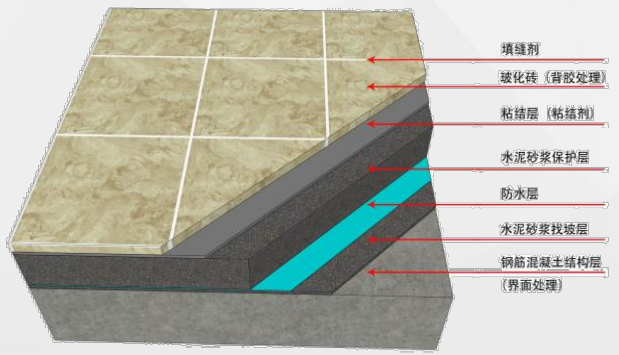 湿区地面铺贴玻化砖(薄贴法)