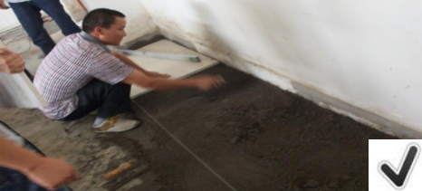 1)根据放线位置和水平位置进行铺贴,先在基层表面平铺一层1:3的半干水泥砂浆(手握成团,手颠即散),厚度 3~5cm,找平压实;
