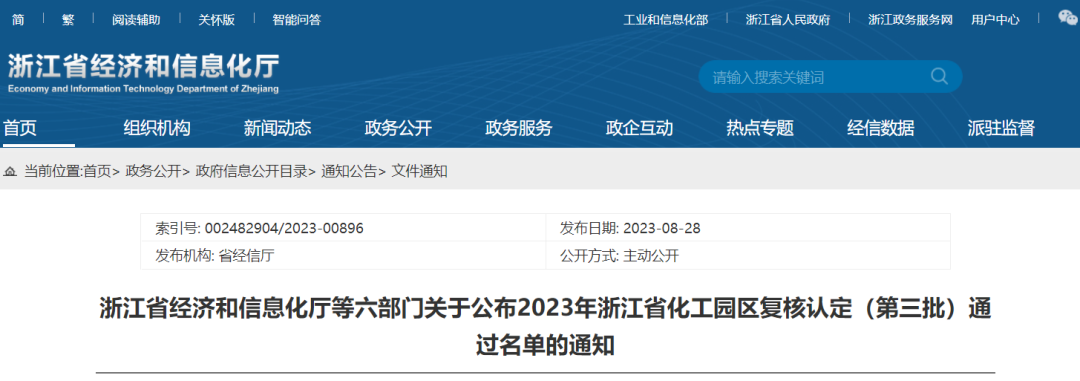 2023年浙江省化工园区复核认定(第三批)通过名单