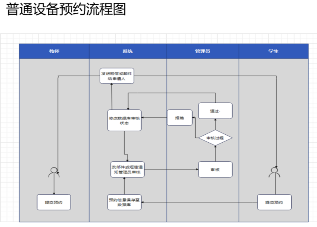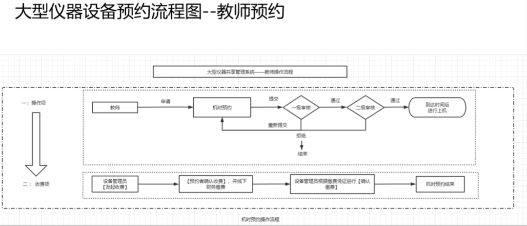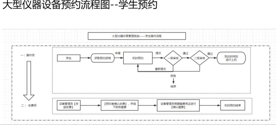 它分别讲诉了普通设备预约和大型仪器设备预约有哪些角色,角色所产生传递的动作,最终将所作的变化都会保存在数据库里,