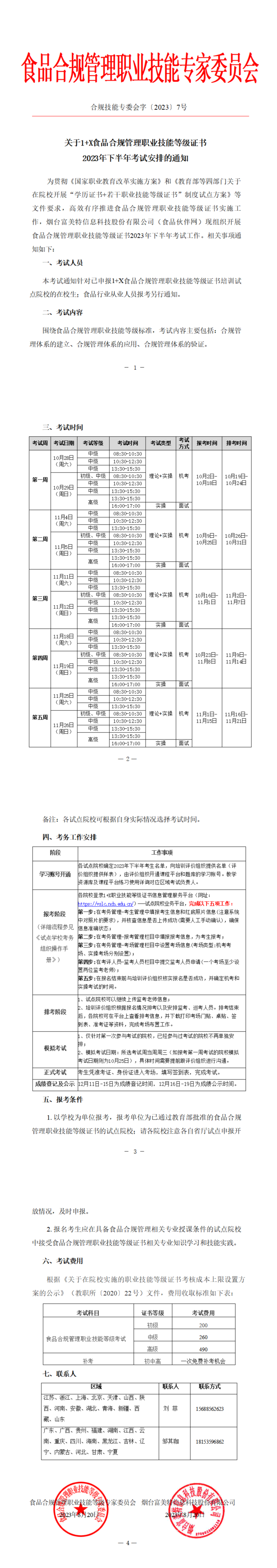 关于1+X食品合规管理职业技能等级证书2023年下半年考试安排的通知
