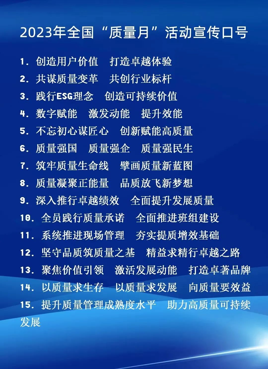今年9月是第46个全国“质量月”。为全面贯彻党的二十大精神,落实质量强国战略,大力营造“人人重视质量,人人保证质量,人人享受质量”的良好氛围,积极引导全员、全过程、全方位质量提升,推进质量制胜战略落地实施,